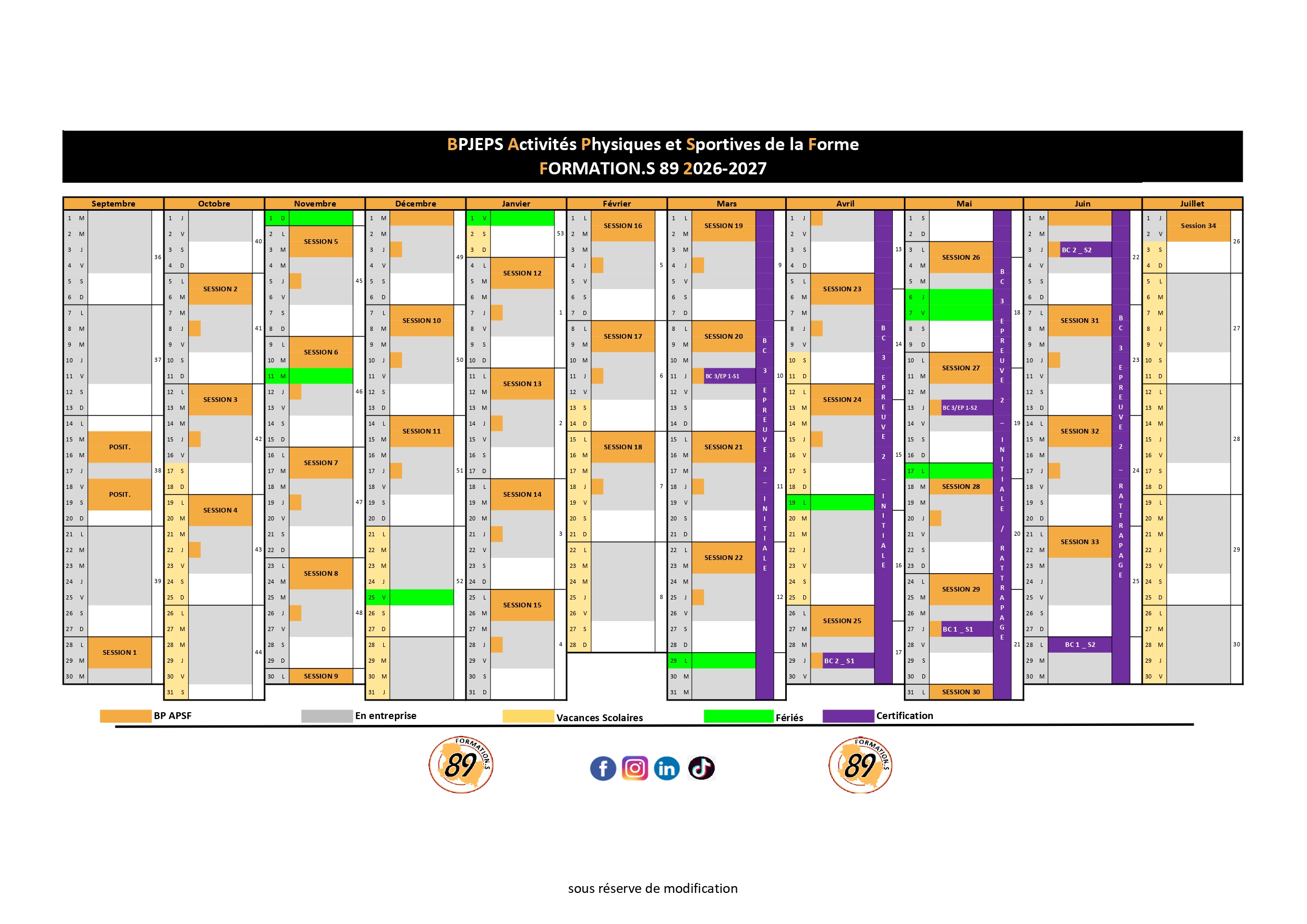 - UC3 : Etre capable de concevoir une séance, un cycle d’animation ou d’apprentissage dans le champ des activités de la forme.