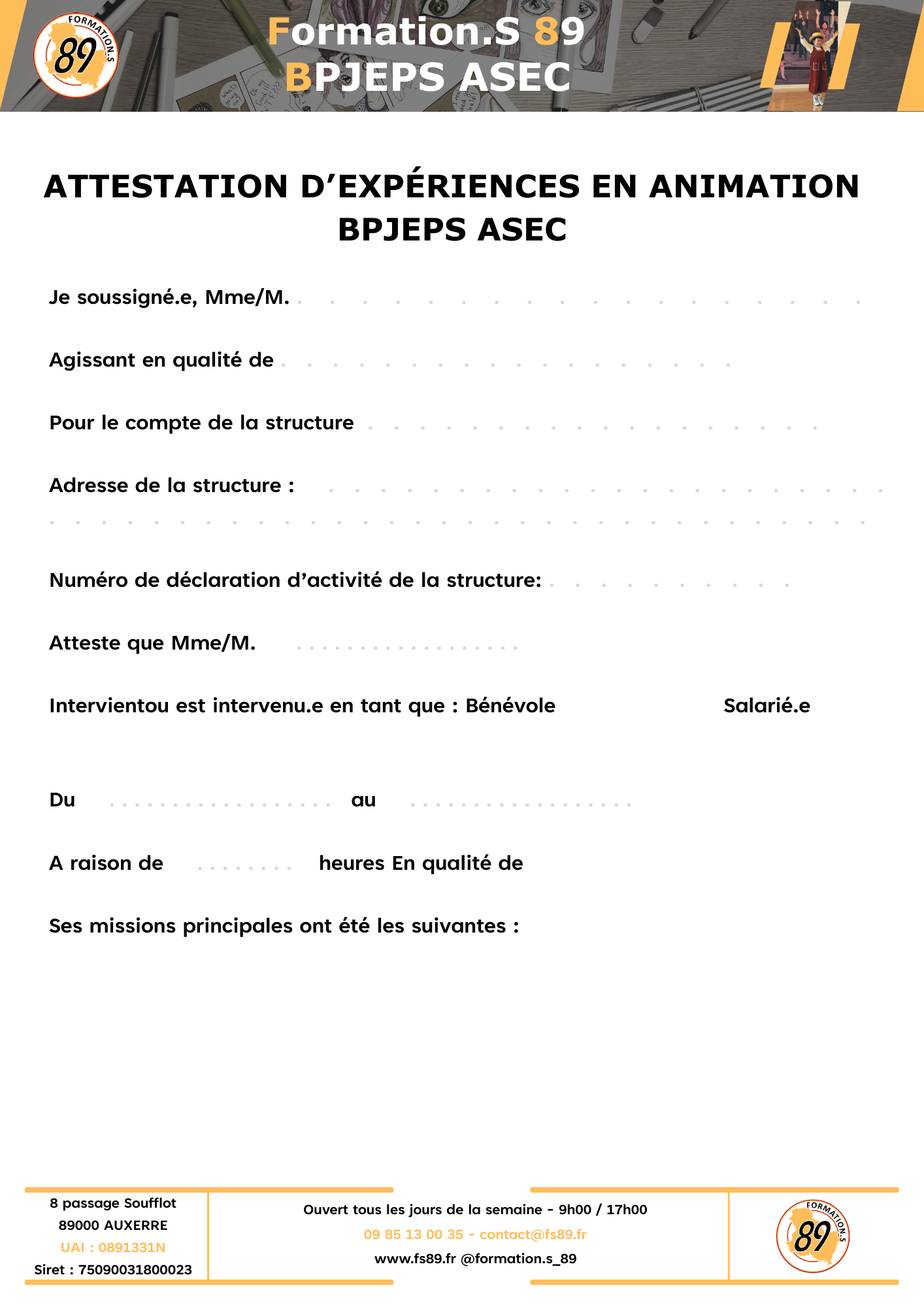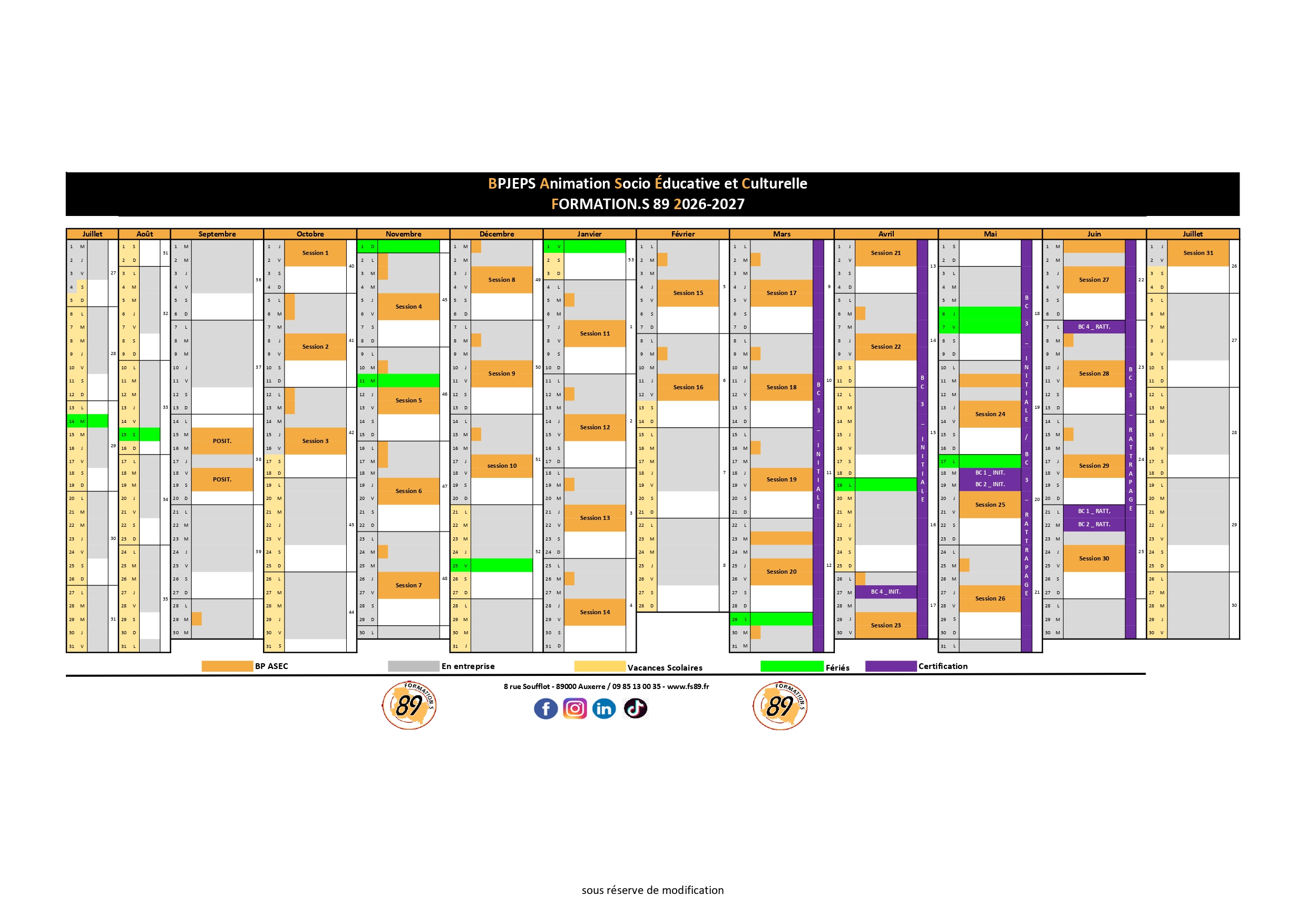 Le BPJEPS ASEC de Formation.S89 sera la première session en 2025/26, le centre de formation ne peut fournir de statistique sur le taux de réussite globale ou l’insetion professionnel à ce jour.