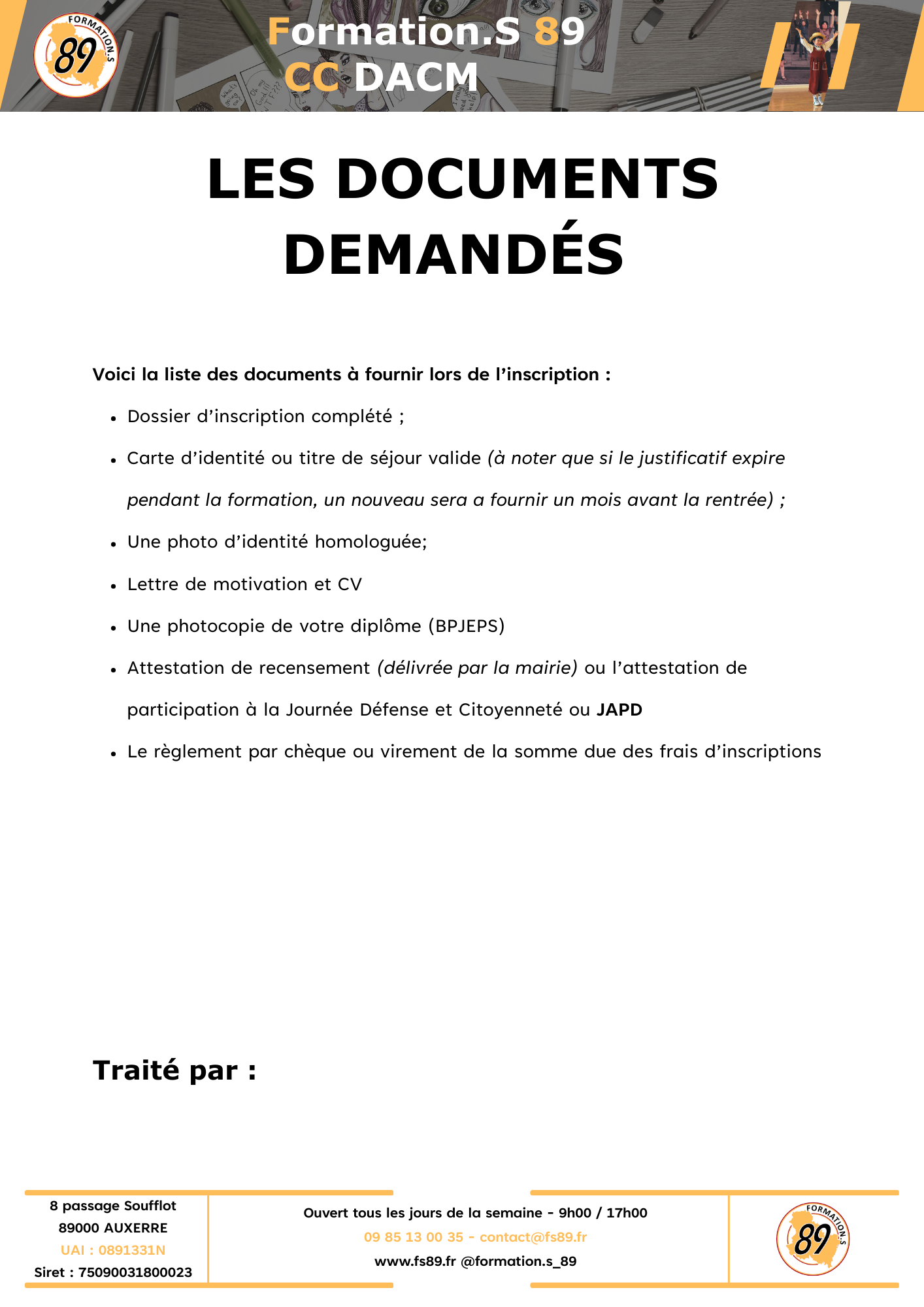 - Réussir les tests d’entrée organisés par l’organisme de formation